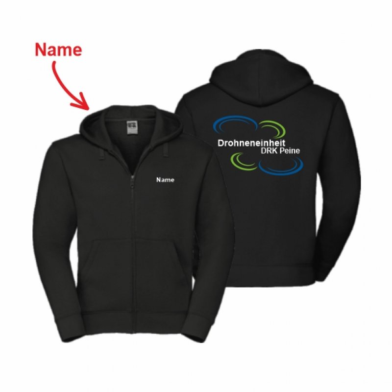 DRK "Drohneneinheit Peine" Hoodie-Jacke Unisex schwarz 5XL inkl. Name