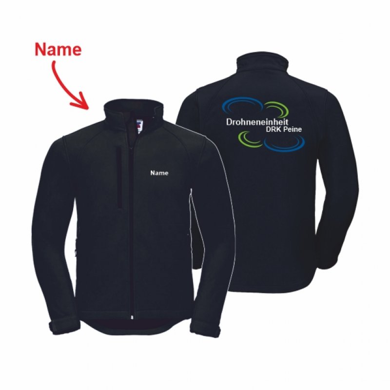 DRK "Drohneneinheit Peine" Softshelljacke Unisex schwarz 4XL inkl. Name