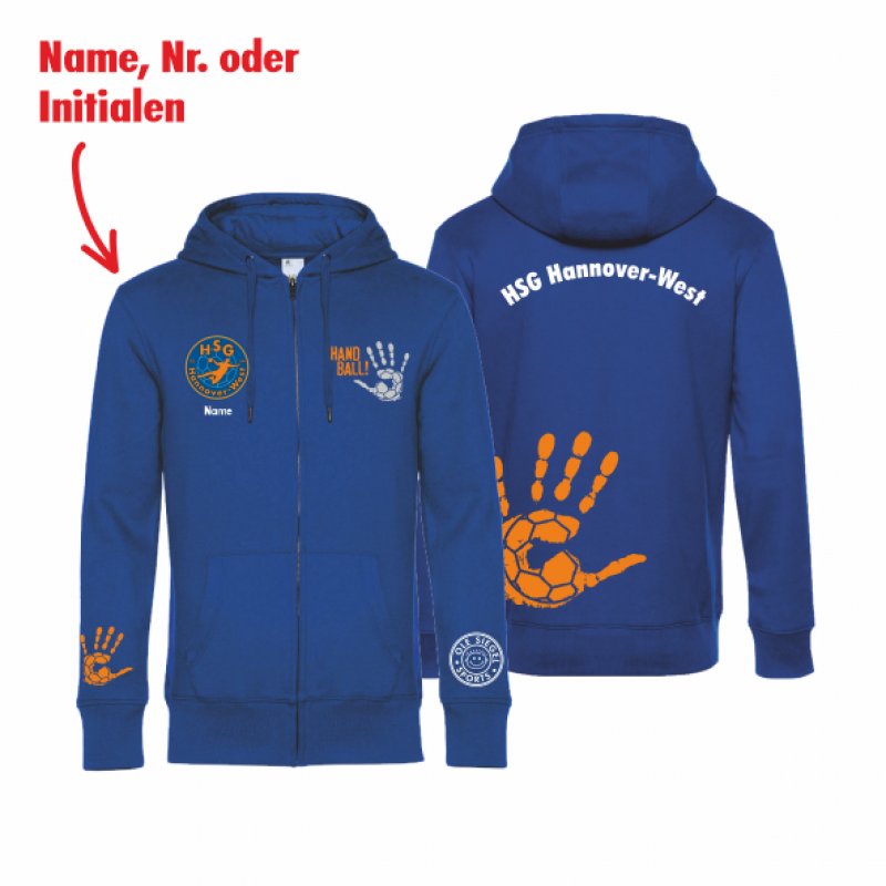 HSG Hannover-West Basic Hoodie-Jacke Unisex royal/orange 4XL inkl. Name