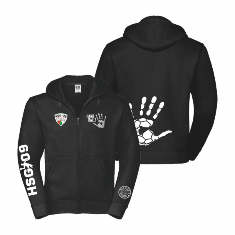 HSG09 Basic Sweatjacke Kids jet black/weiß 7/8 (ca. 122/128) ohne Zusatzaufdruck