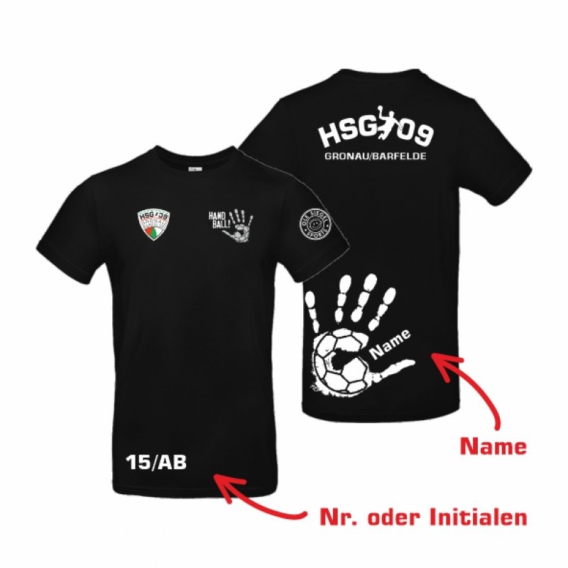 HSG09 Basic T-Shirt Unisex schwarz/weiß 5XL inkl. Namen