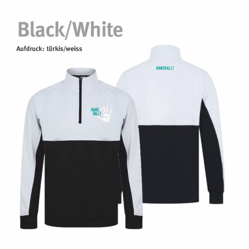 Kontrastierende Einsätze oben an der Brust und an den Ärmeln in Kontrastfarben