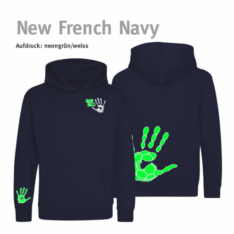 Hoodie Handball!-Collection Kids new french navy 7/8 Jahre (ca. 122/128) neongrün/weiss