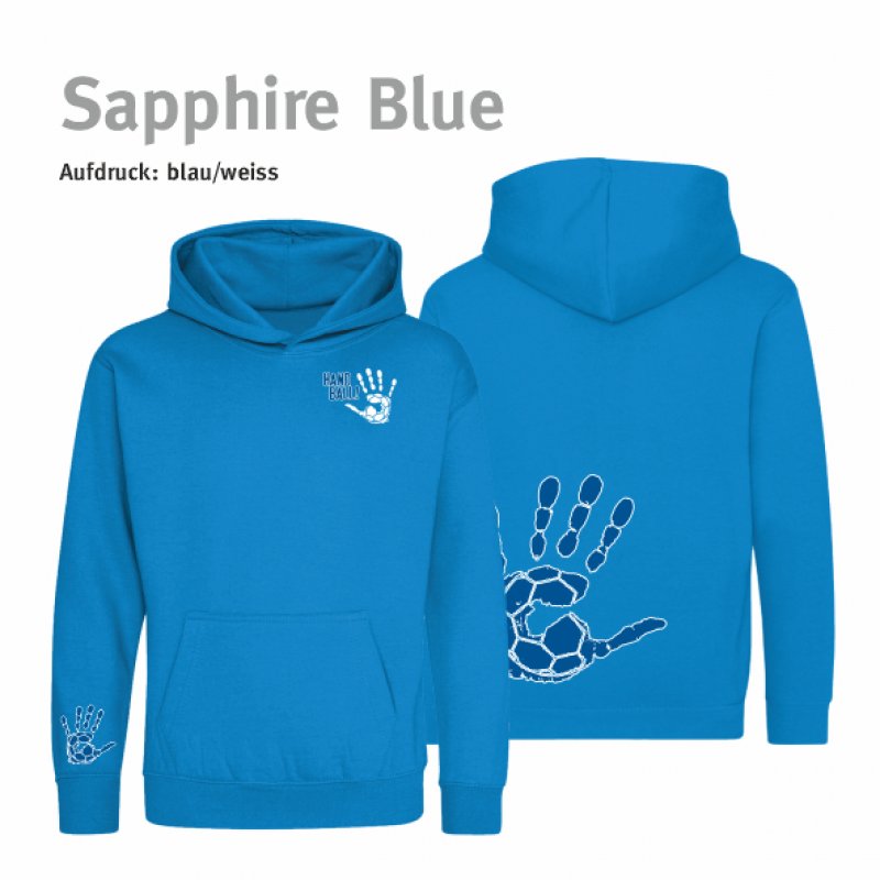 Hoodie Handball!-Collection Kids sapphire blue 7/8 Jahre (ca. 122/128) blau/weiss