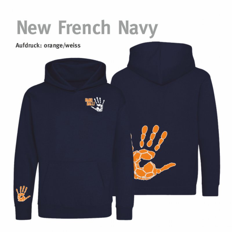 Hoodie Handball!-Collection Minis new french navy 5/6 Jahre (ca. 110/116) orange/weiss