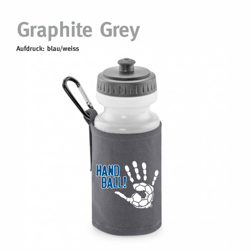Trinkflasche mit Halter Handball!-Collection graphite grey blau/weiss